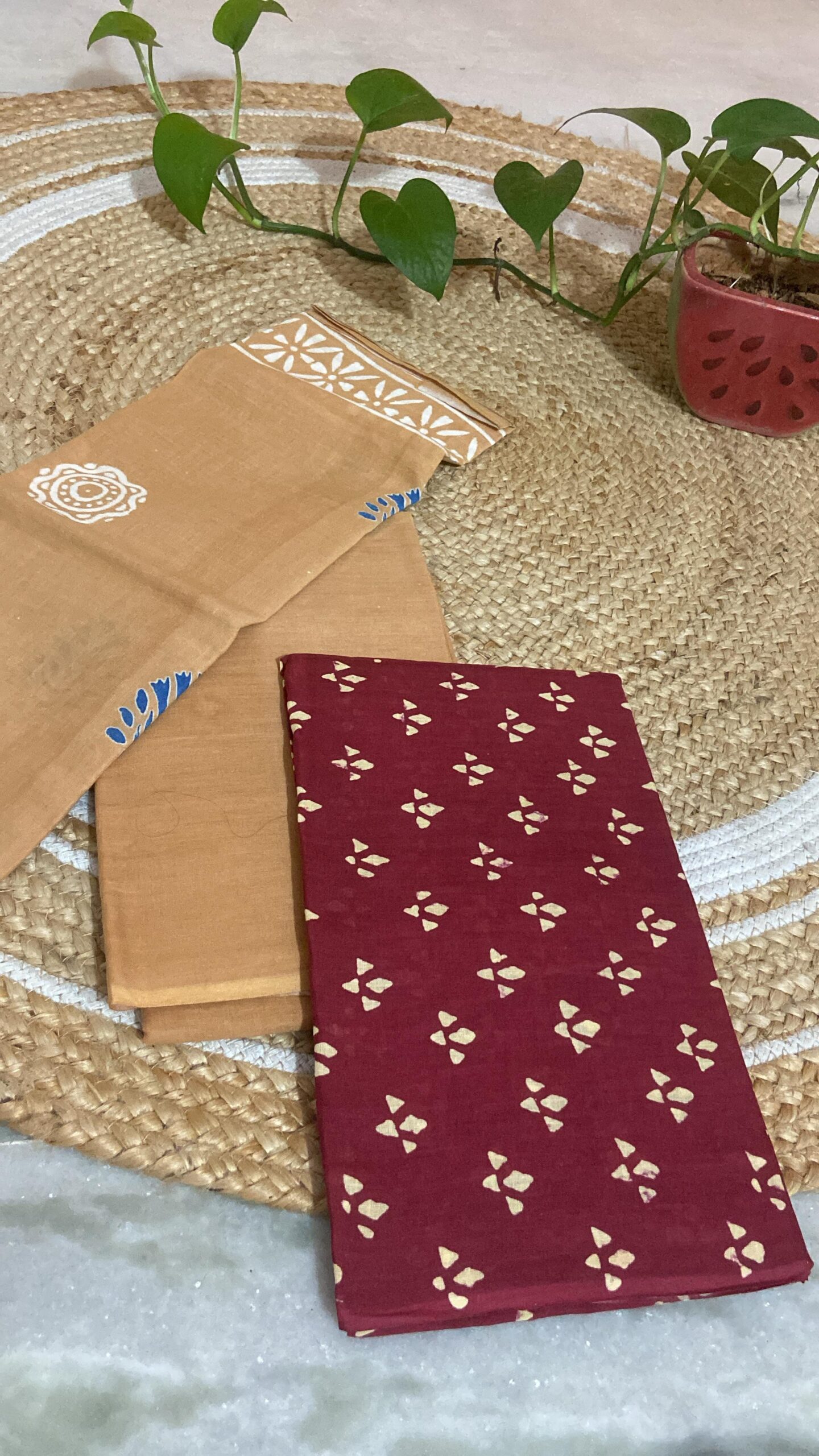 Maroon-Cream Cotton Dress Material